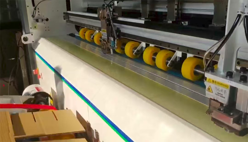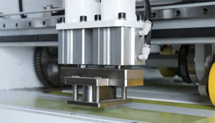 - Four longitudinal cutting knives and four indentation knives are driven separately by eight sets of servo motors. They operate simultaneously during the model change, enabling rapid model switching.