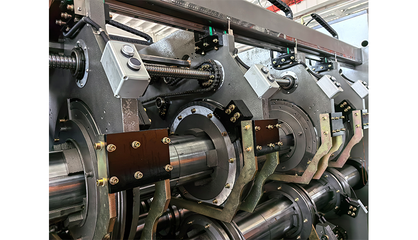 - Using linear guide rail technology, it is smooth and accurate, ensuring the precision of the slotting phase. The ten-thread screw system automatically adjusts, and the pre-pressing wheel, pressing wheel, and slotting tool holder in the slotting part move synchronously left and right through electric adjustment. The control is achieved through buttons and touch screens.
